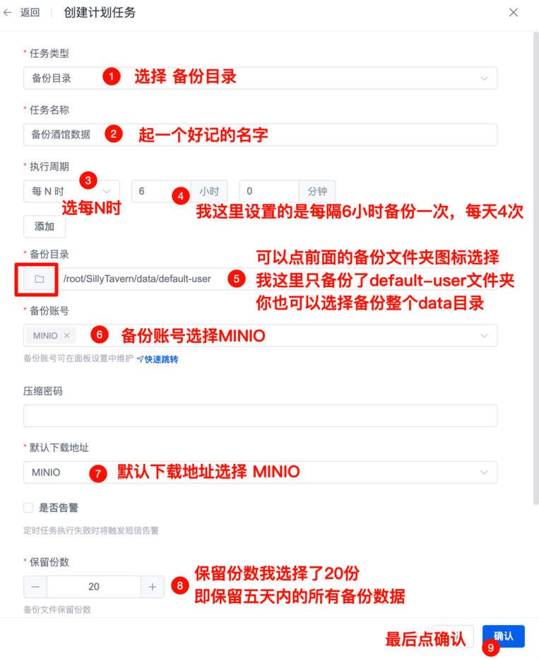 接下来,1Panel 就会按照你设置的计划任务,每隔 6 个小时就全自动备份一次你的酒馆数据。