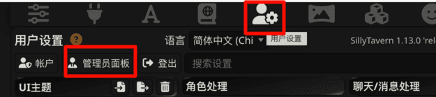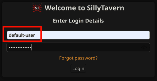 default-user,密码是你刚刚在酒馆内设置管理员密码。点击 Login 登录。