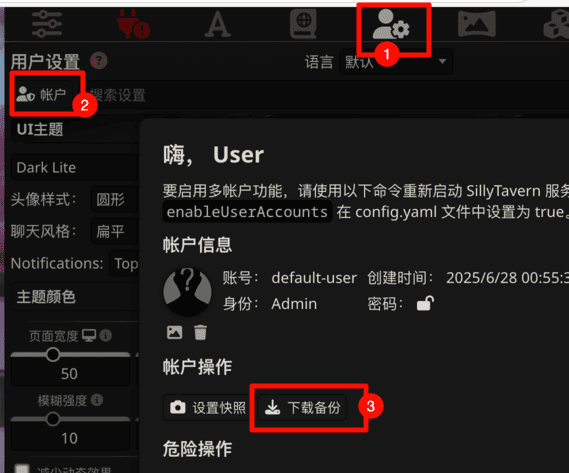 打开你现在的酒馆,通过下图方式备份数据(将会是一个 ZIP 格式的压缩包)