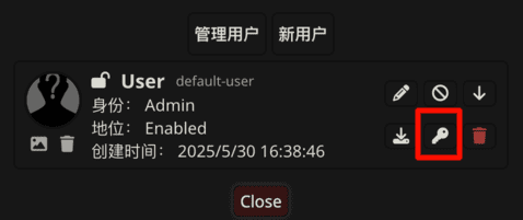config.yaml中将enableUserAccounts: false改为enableUserAccounts: true【必须】重启你的云酒馆,进入酒馆后,打开管理员面板,给自己的默认用户(default-user)设置一个密码,如图:- 【必要】给自己的默认用户设置一个密码是必要的