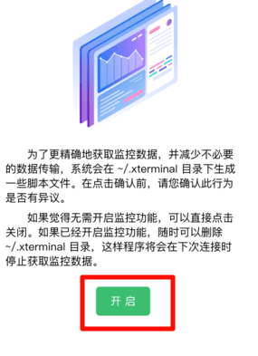 软件右侧提示可以开启监控,我们直接点`开启`,再点`确认`(非必要开启):