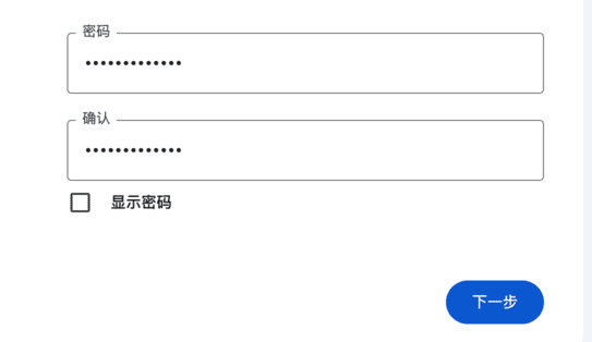 设置一个密码(怕打错就点显示密码看看你的密码),然后点击下一步