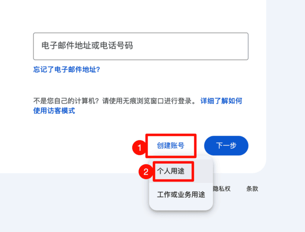 1,在打开的页面中,点击 创建账号 选择 个人用途